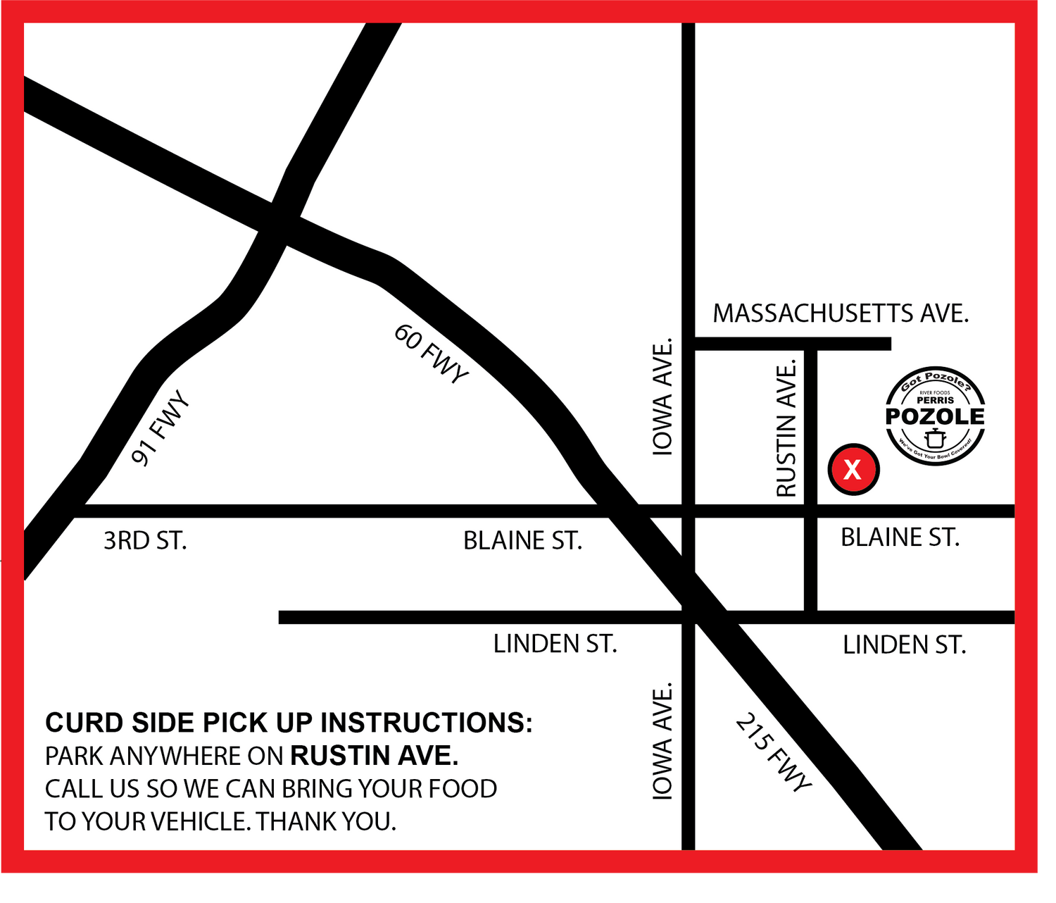 Curd side pick up instructions: Park anywhere on Rustin Ave. Call/Text us at (951) 293-4355
